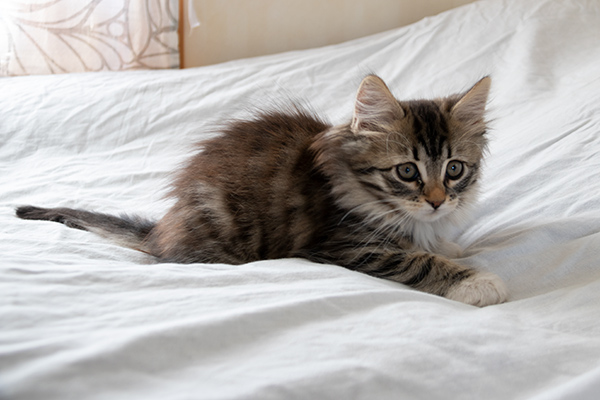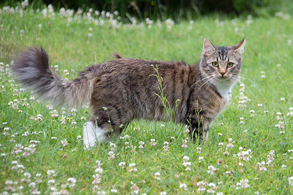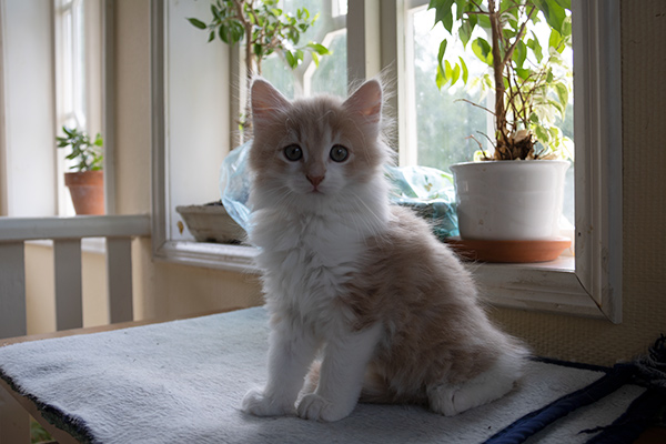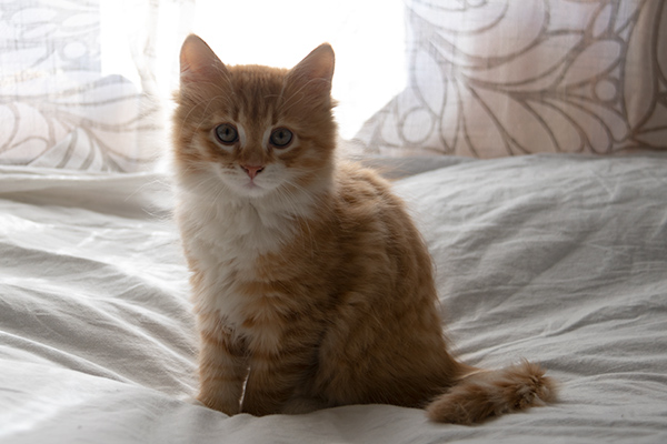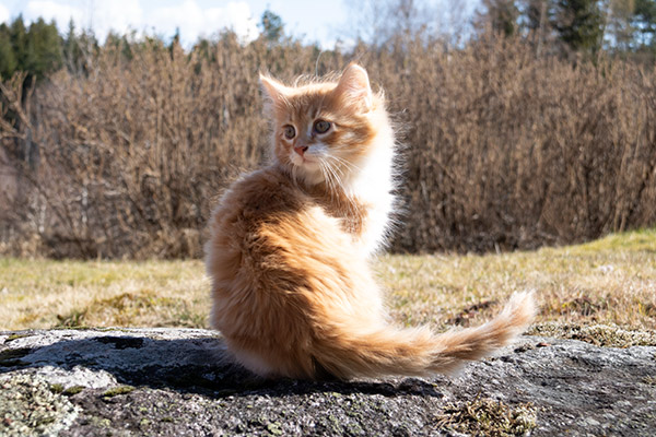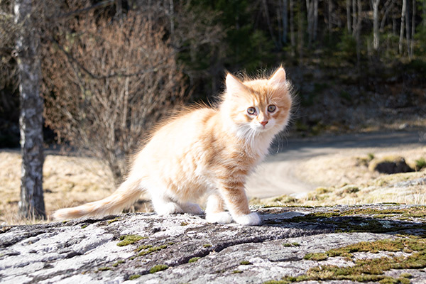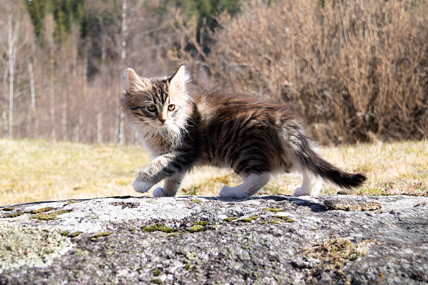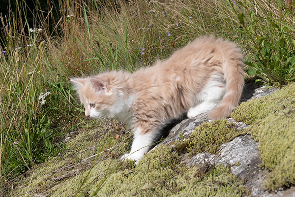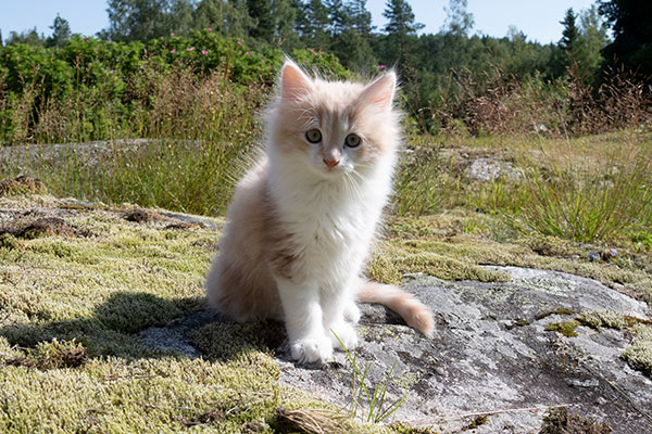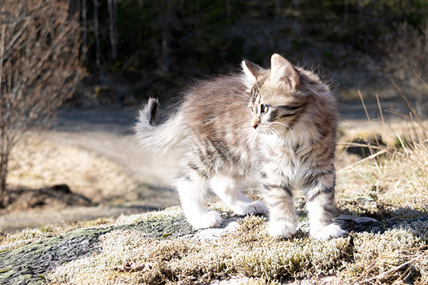 Huldra dotter till Puma är 75% bondkatt och 25% maine coon.