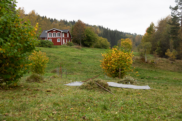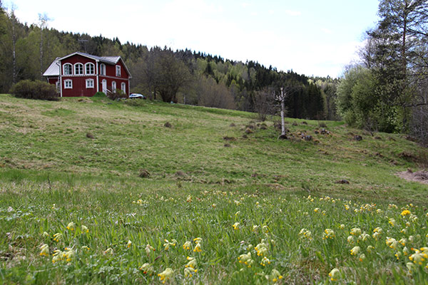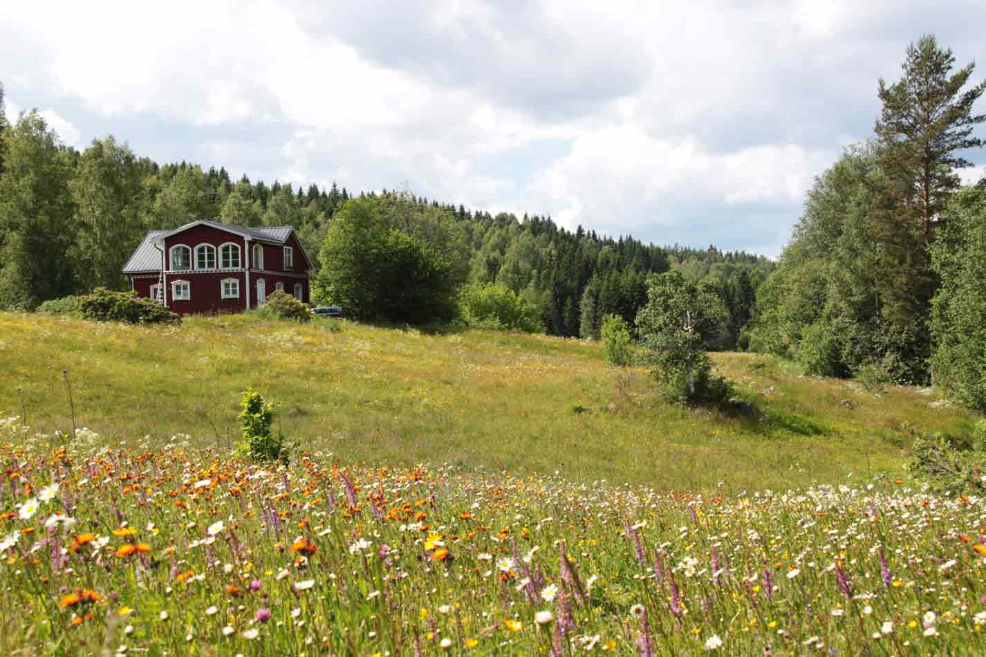 Bilder från 2015, huset har byggts till och målats rött. I början av 90 talet så bättrade jag på floran genom att så in hösmul från ängar i ängsinventeringen i Arvika kommun. Bäst frön och mängd fick jag från Mjögsjöhöjden i Gunnarskog, säckar med färska frön från höladans golv, de åldriga syskonen undrade säkert vad jag skulle ha fröna till, gubben skrattade mest.