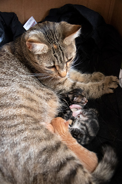 Jag har beslutat att jag skall behålla honan själv, och kastrera mamman (pension). Kattflickan är helt perfekt både i utseende och beteende, har troligen ärvt den halvlånga pälsen av sin mormor (Maine Coon), för morfar och far är korthåriga bond/huskatter. (Rena bondkatter med lokalt ursprung från yngre järnålder finns snart inte kvar, blandraskatter och raskatter tar snart över hela kattbeståndet). Lantrasföreningen Bondkatten