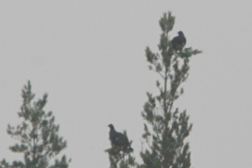 Jag hörde orrarna spela lite försiktigt på mossen, även om det är fel årstid, och när jag närmade mig en myrholme, så flög ett 40-tal orrar upp och förmörkade himlen med sina silhuetter. Här måste det vara ett mäktigt orrspel om våren, kanske värt ett besök.